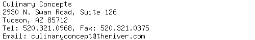 Additional information: Judith Berger, CCP, welcomes you to Culinary Concepts - An extraordinary cooking school. We offer a wide variety of classes for everybody from kids to serious home chefs, from backyard barbecues to elegant dinners to heart healthy cooking--have fun cooking with family and friends in our beautiful kitchen.