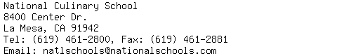 Visit web site, http://www.nationalschools.com/Culinary/culinary_arts_program.htm